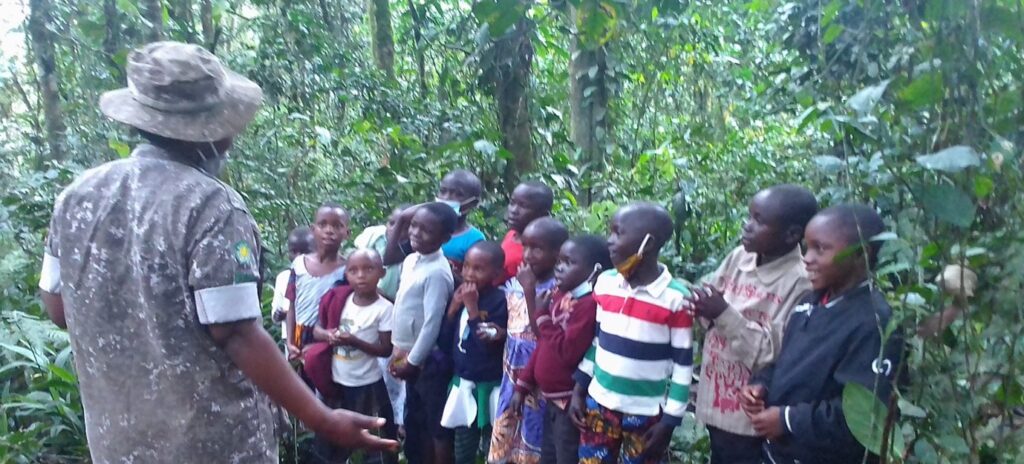 We engage schools around Bwindi impenetrable national park in conservation education and awareness programs through conducting conservation education lessons, guided Bwindi Forest walks and tree planting aiming at creating mind set change amongst children to embrace conservation of gorillas, other wildlife and their habitat.